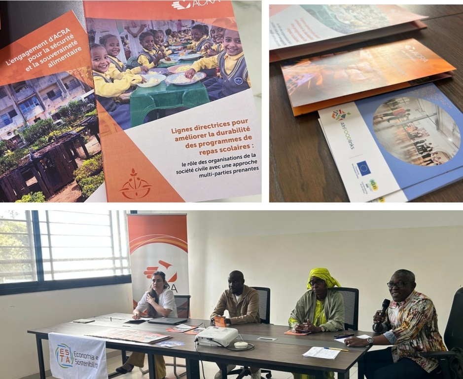 Le pubblicazioni di ACRA sulla sicurezza, sovranità alimentare e mense scolastiche. Un momento della partecipazione di ACRA al Living Lab di Dakar